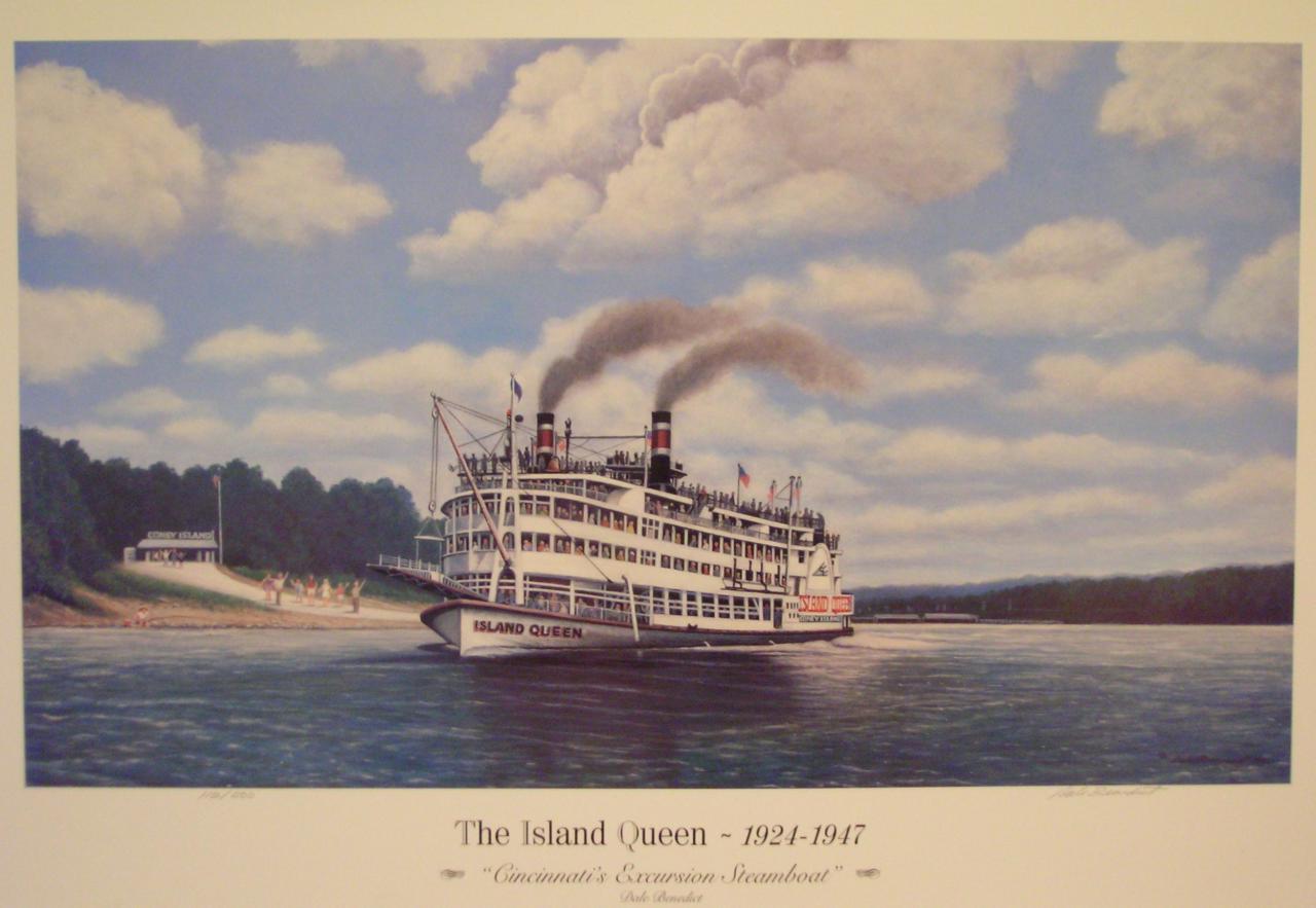 Island Queen. Another print inspired by the famous Cincinnati boat races, the Island Queen sails past Coney Island.