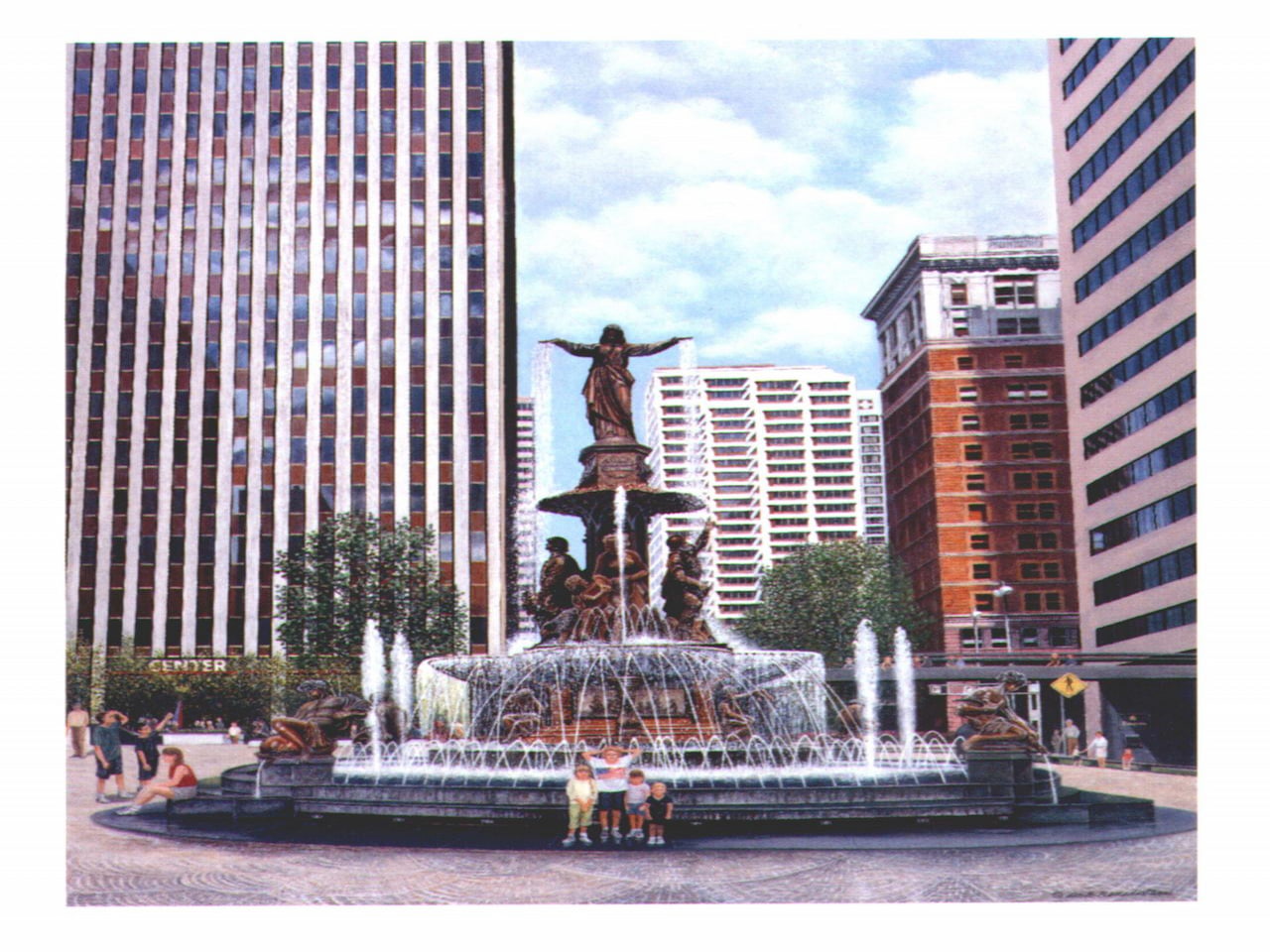 Tyler Davidson Fountain. One of Dale’s most popular Cincinnati scenes, the Tyler Davidson Fountain is a remarkable recreation of the magnificent bronze statue and the surrounding Fountain Square in Cincinnati, Ohio. With rare attention to detail, Dale brought to life the bronze beauty right after its restoration in 2000. Copper medallions, forged from the metal used during the restoration, are also available in framed copies.